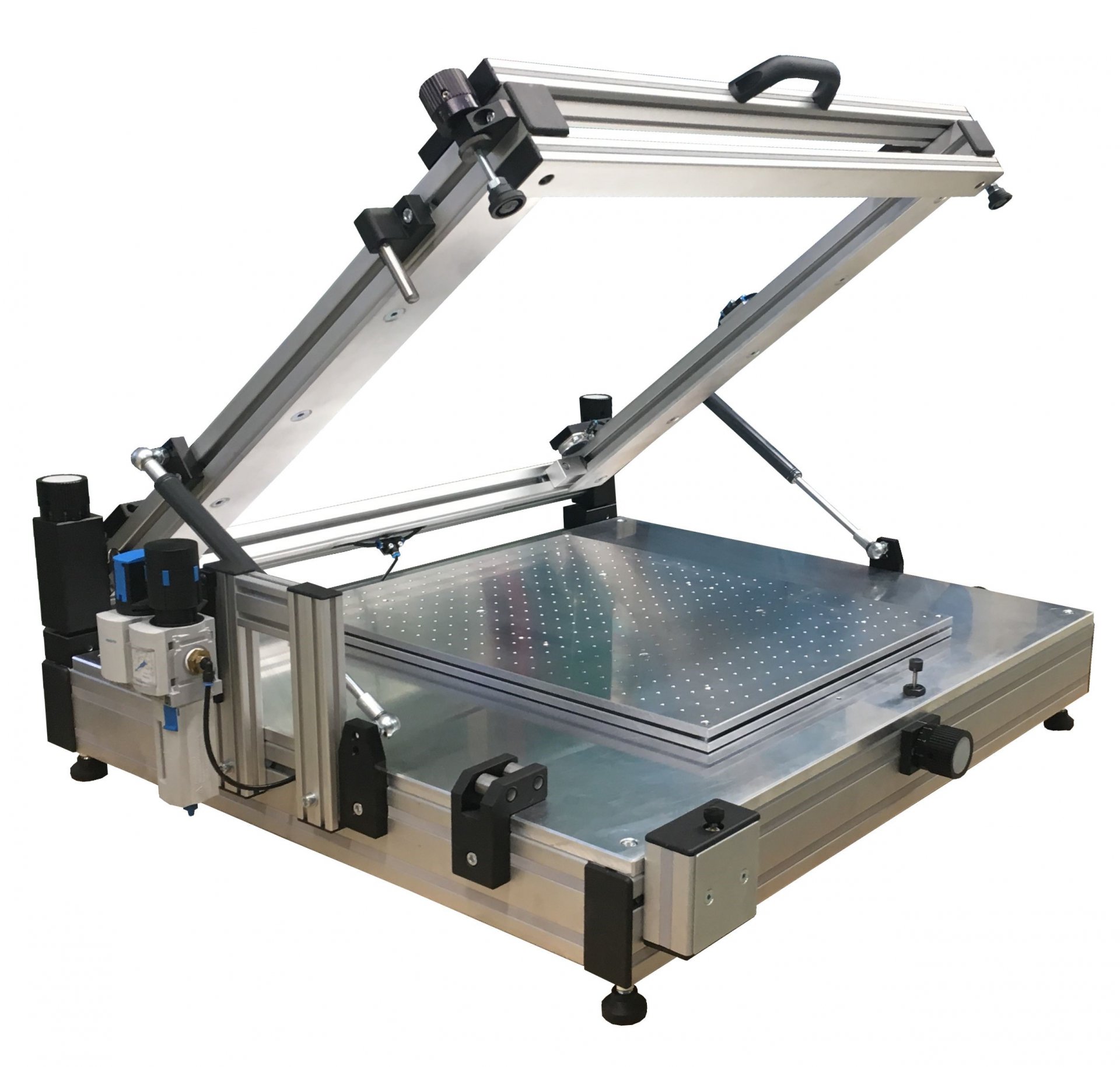 Unsere Schablonendrucker sind manuelle Drucksysteme mit stabilem Rahmen aus ITEM-Profilsystemen und zeichnen sich durch eine sehr hohe Druckqualität aus.